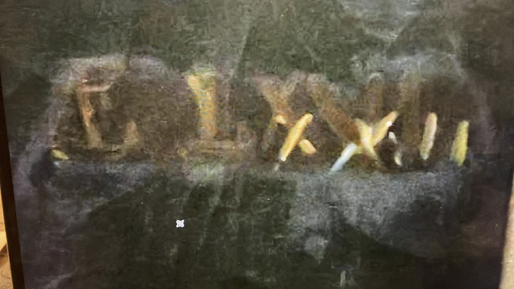 Detail of inscription, “G.B. Kuyk,” suggests a different artist and a connection to Machen’s early training in Holland. Photo: Jeremy Wadsworth, The Blade. (high-resolution detail of painting in above photo)