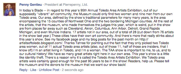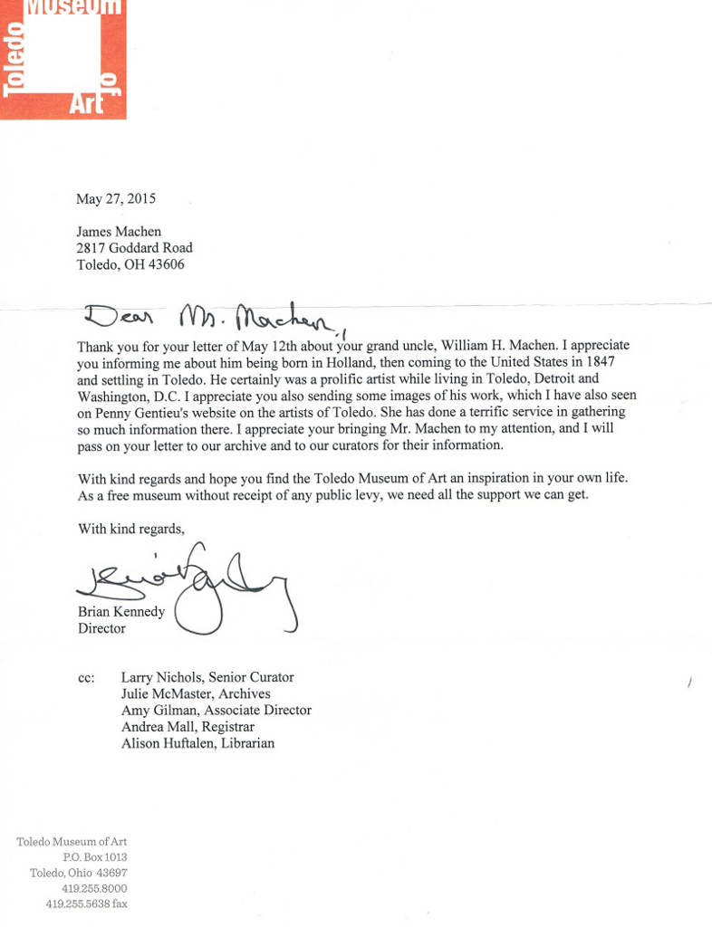 I respectfully urge you, as Chair of the Board, to address these issues publicly. The Toledo Museum of Art is a treasured institution built and endowed by the Libbeys as a gift to the people of Toledo, and decisions of this magnitude must be made with full transparency and not just pushed on community using tactics like censorship and gaslighting. I ask that you halt the destruction of the Cloisters, cancel the loan to New Zealand and rehang the Impressionist and 20th century paintings. And then find new leadership that will provide proper stewardship and keep our museum intact.